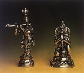Krishna ist die 8. Inkarnation Vishnus (Avatar). Wegen seiner außergewöhnlichen Kraft und Schönheit ist er sehr beliebt. Er verkündet die Bhagavadgita. Seine Flöte gilt als Symbol für den Menschen, der durch den Hauch des Schöpfers belebt wird und dann in Harmonie mit ihm erklingt.